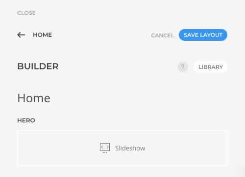 Cada vez que se modifica el diseño, aparecen los botones CANCEL y SAVE LAYOUT fijos en la esquina superior derecha. Al hacer clic en CANCEL o salir del editor de páginas (CLOSE), se descartarán todos los cambios realizados desde el último guardado. Tenga en cuenta que guardar el diseño de la página no guarda la configuración del tema.