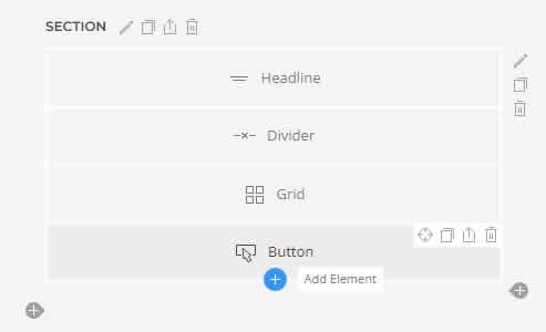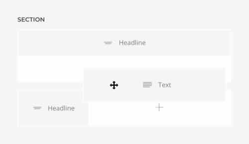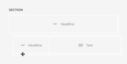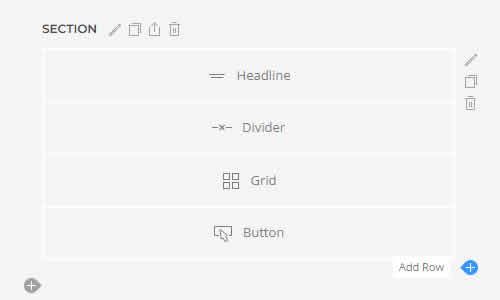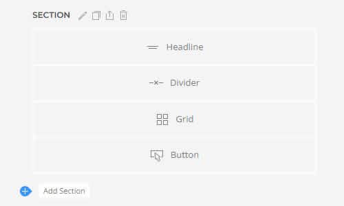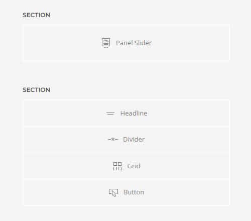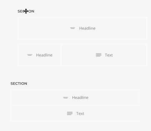 Sections | Las secciones agrupan el contenido en bloques visuales más grandes. Contienen una o varias filas. |