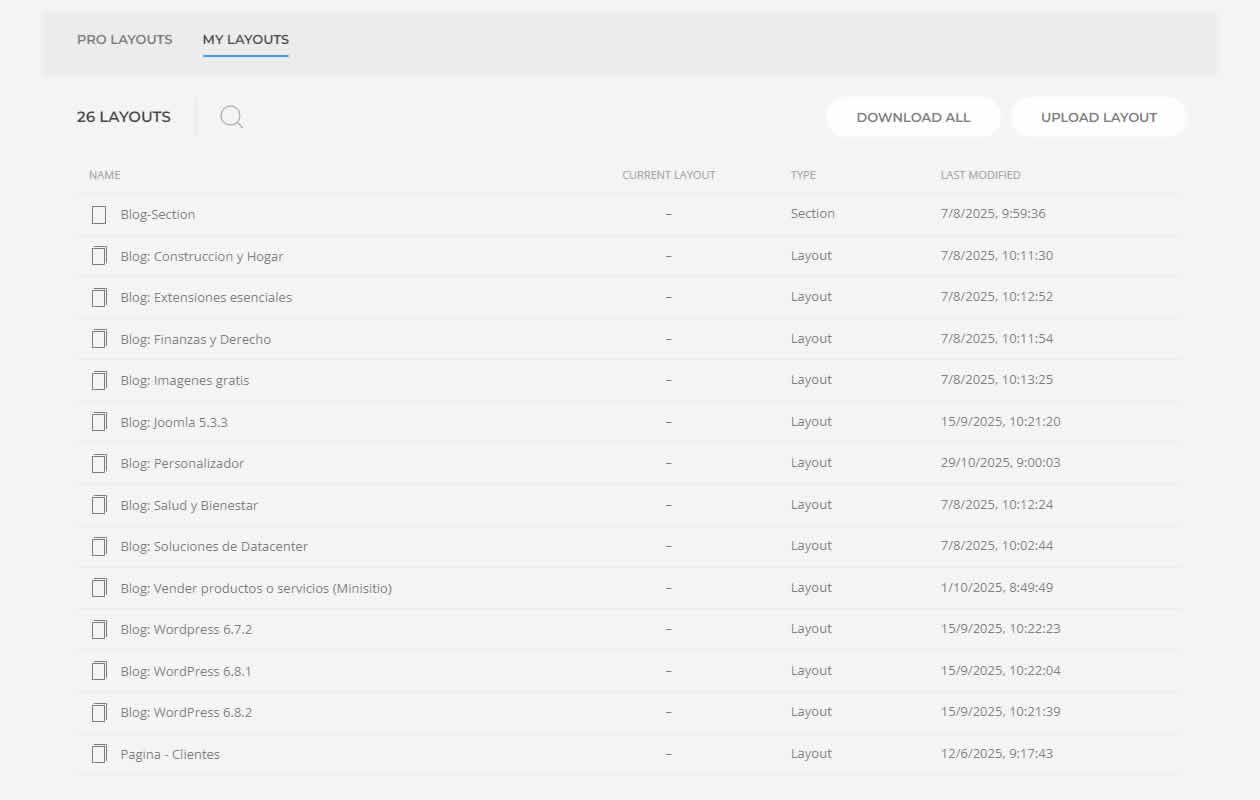 Haz clic en la pestaña MY LAYOUTS para importar un diseño guardado