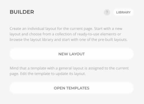 Para crear un nuevo diseño desde cero, haz clic en el botón NEW LAYOUT y comienza a añadir secciones y elementos. También puedes importar un diseño guardado en la biblioteca de diseños haciendo clic en el botón LIBRARY.