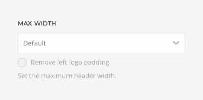 Establece el ancho máximo del contenido para el encabezado y la barra de navegación. Elige entre Predeterminado, Pequeño, Grande y Extragrande (Default, Small, Large y X-Large) para fijar un ancho máximo. La opción Expandir (Expand) amplía el encabezado al ancho completo de la ventana gráfica, manteniendo un pequeño margen a la izquierda y a la derecha. Opcionalmente, se puede eliminar el margen del logotipo en diseños donde este se ubica a la izquierda, por ejemplo, en logotipos con fondos de color.