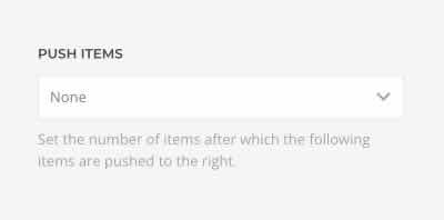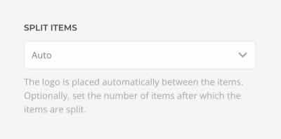 Los diseños Stacked Center C y Stacked Center Split ofrecen la opción de configurar el número de elementos a partir del cual se dividen. Esto puede ser necesario, por ejemplo, si los elementos del menú tienen longitudes diferentes o si se publican widgets adicionales en el área.