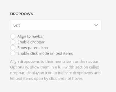 Enable Dropbar | Opcionalmente, muestre los menús desplegables en una sección de ancho completo llamada barra desplegable. |
