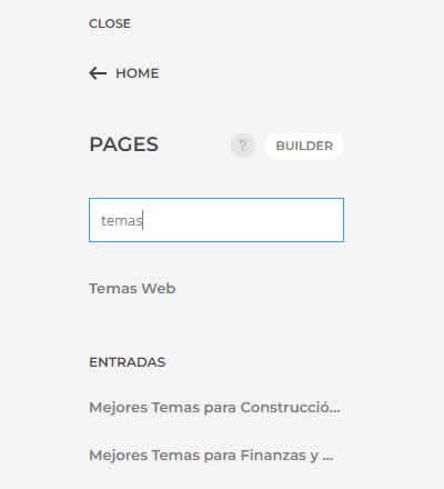 Por defecto, la lista de páginas está limitada a 50. Utilice la búsqueda para encontrar una página específica o busque una entrada de cualquier tipo para personalizarla. Los resultados de la búsqueda se agrupan por tipo de entrada.