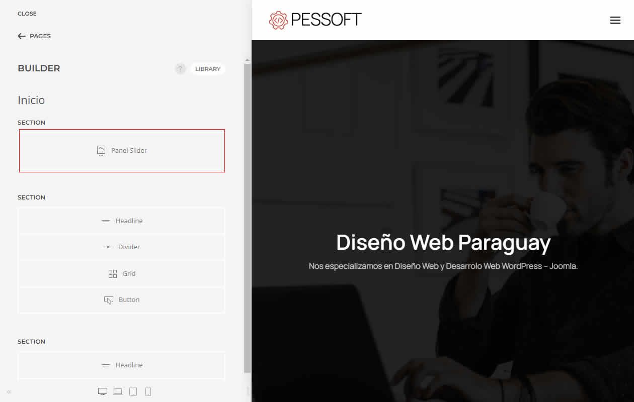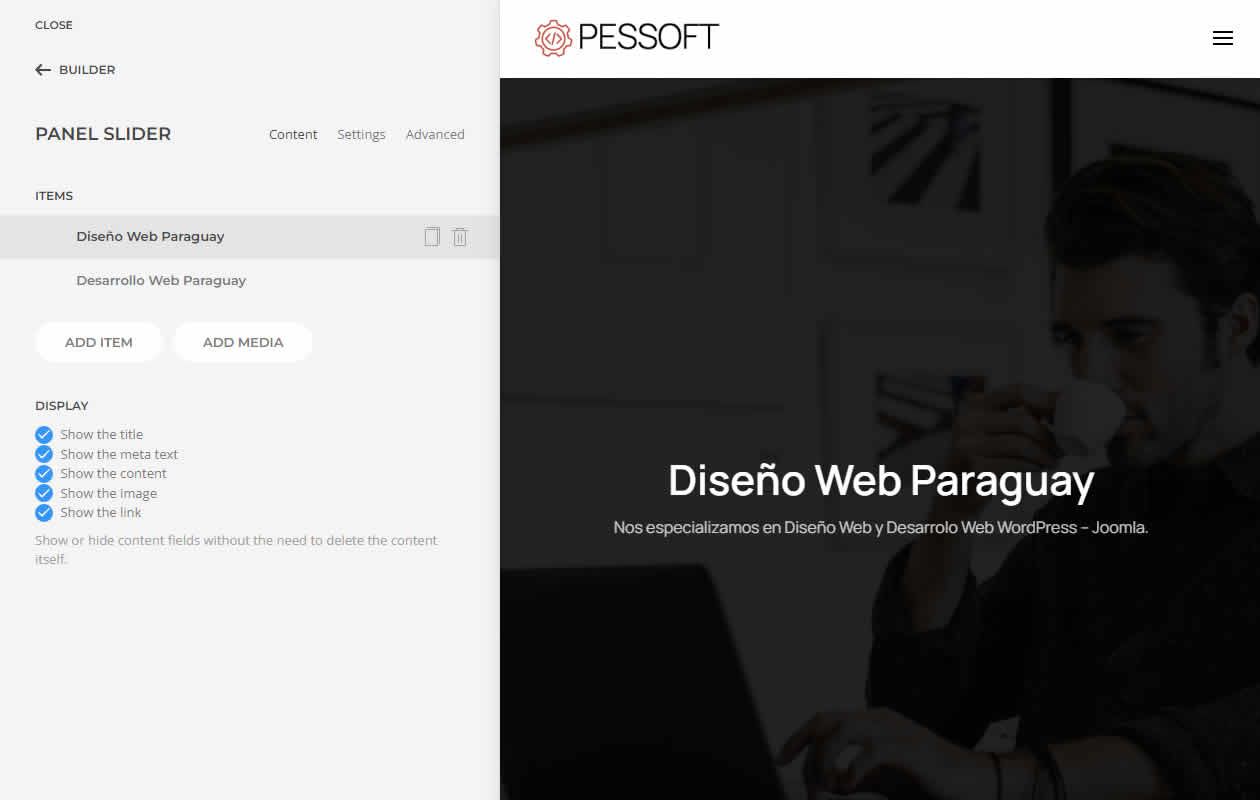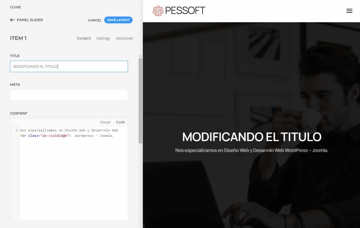 Haz clic en el elemento que quieras modificar. Ej: Panel Slider